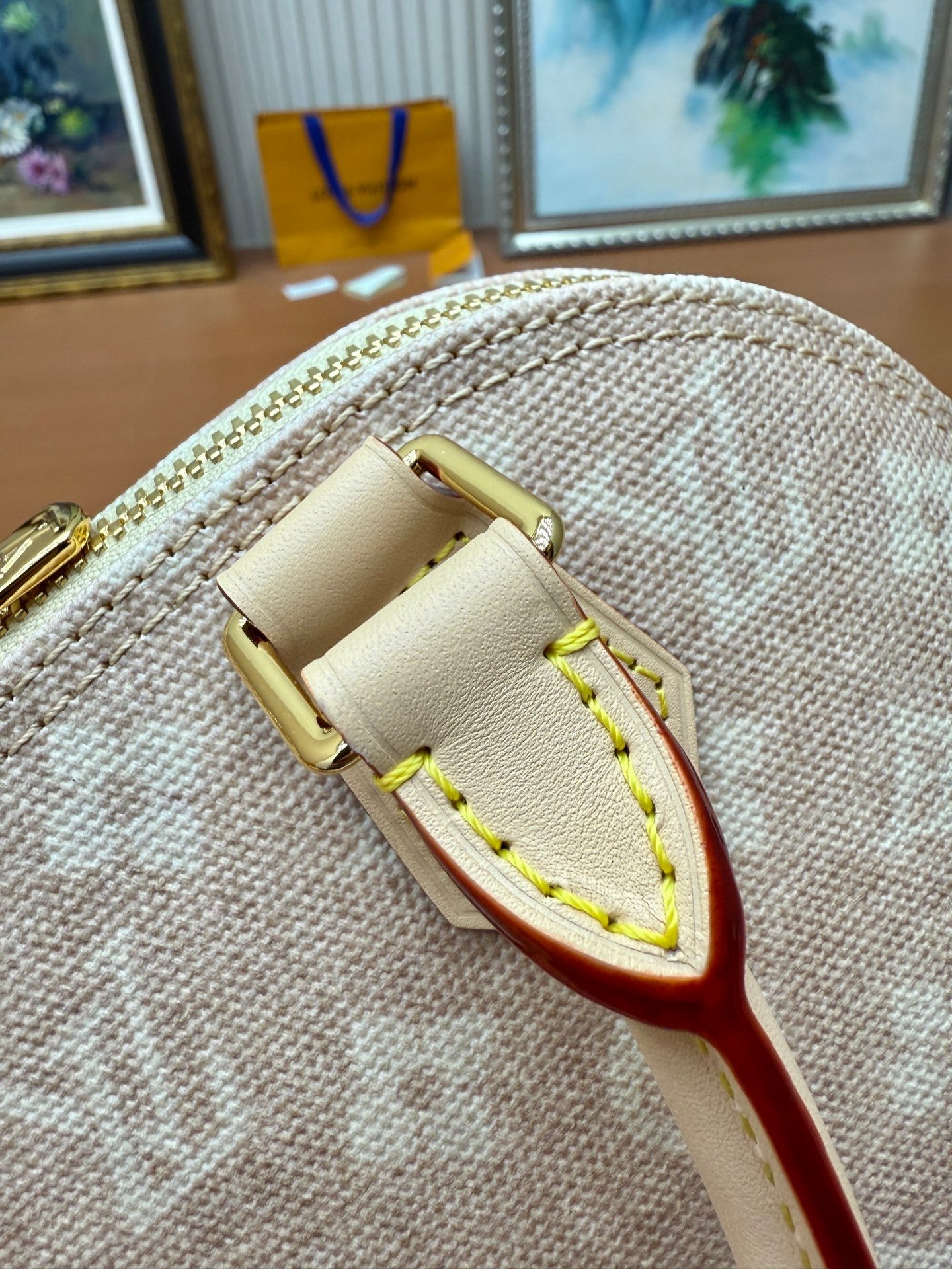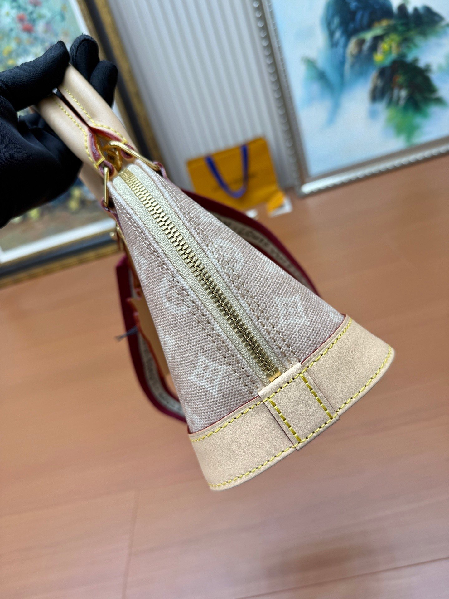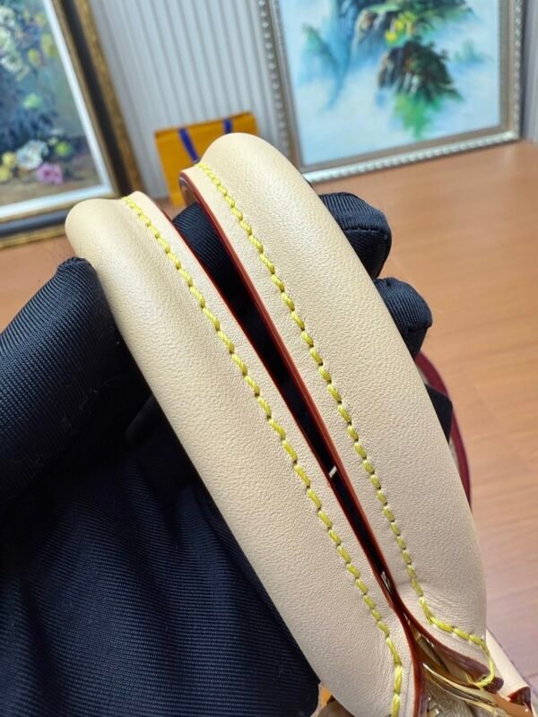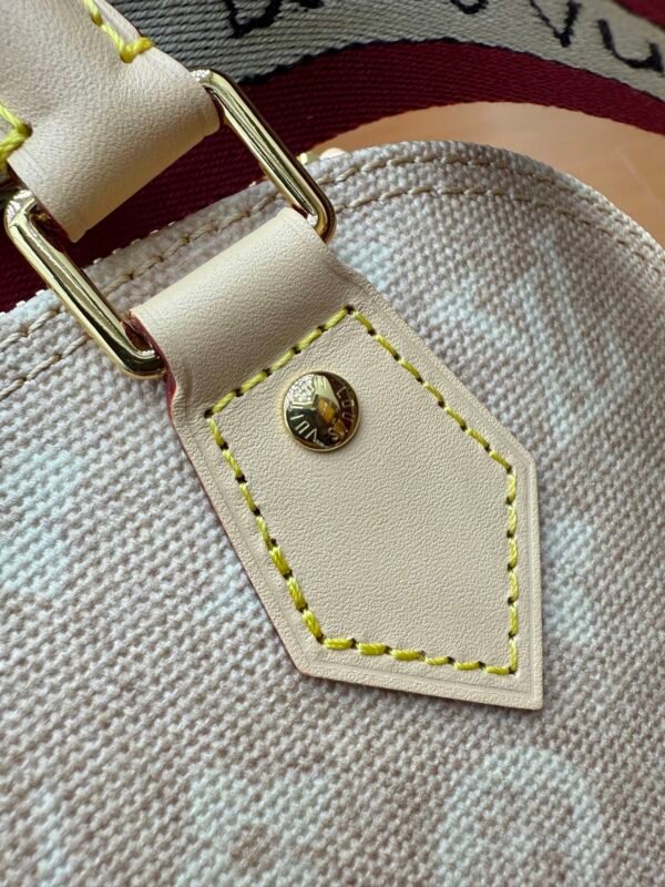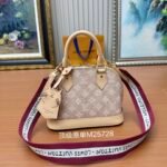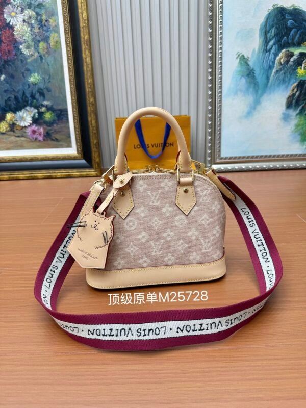 This Alma BB bag from the Travels With Grace Coddington collection, a collaboration between Louis Vuitton and Grace Coddington, features the playful Meowgram motif. The canvas body is trimmed with calf leather, while the fabric shoulder strap displays the “Louis Vuitton” name in Coddington’s handwriting. The refined padlock and key pouch further showcase the brand’s exceptional craftsmanship. Meowgram coated canvas Cowhide leather lining Fabric lining Metal hardware Internal patch pocket Key pouch Padlock Metal studs Holds smartphone, Lisa wallet, keys, and lipstick Shoulder strap: Detachable, non-adjustable Dimensions: 23.5 x 17.5 x 11.5 cm
