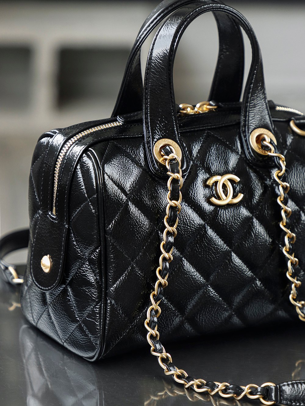25A Runway Edition Small Bowler Bag in Wrinkled Lacquered Cowhide Authentication VersionC-2180