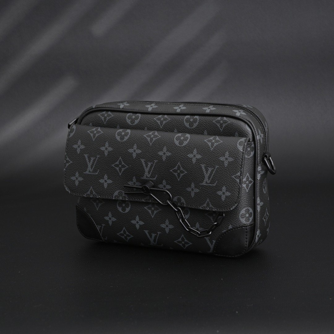 Steamer Series Messenger Bag for Men – Undeniably a Bestseller! Combines numerous classic Louis Vuitton elements: monogram canvas, adjustable leather shoulder strap, chain details. Features dual compartments: exterior flap pocket and interior zipper pocket. Ample capacity for daily casual use – a worthwhile purchase!