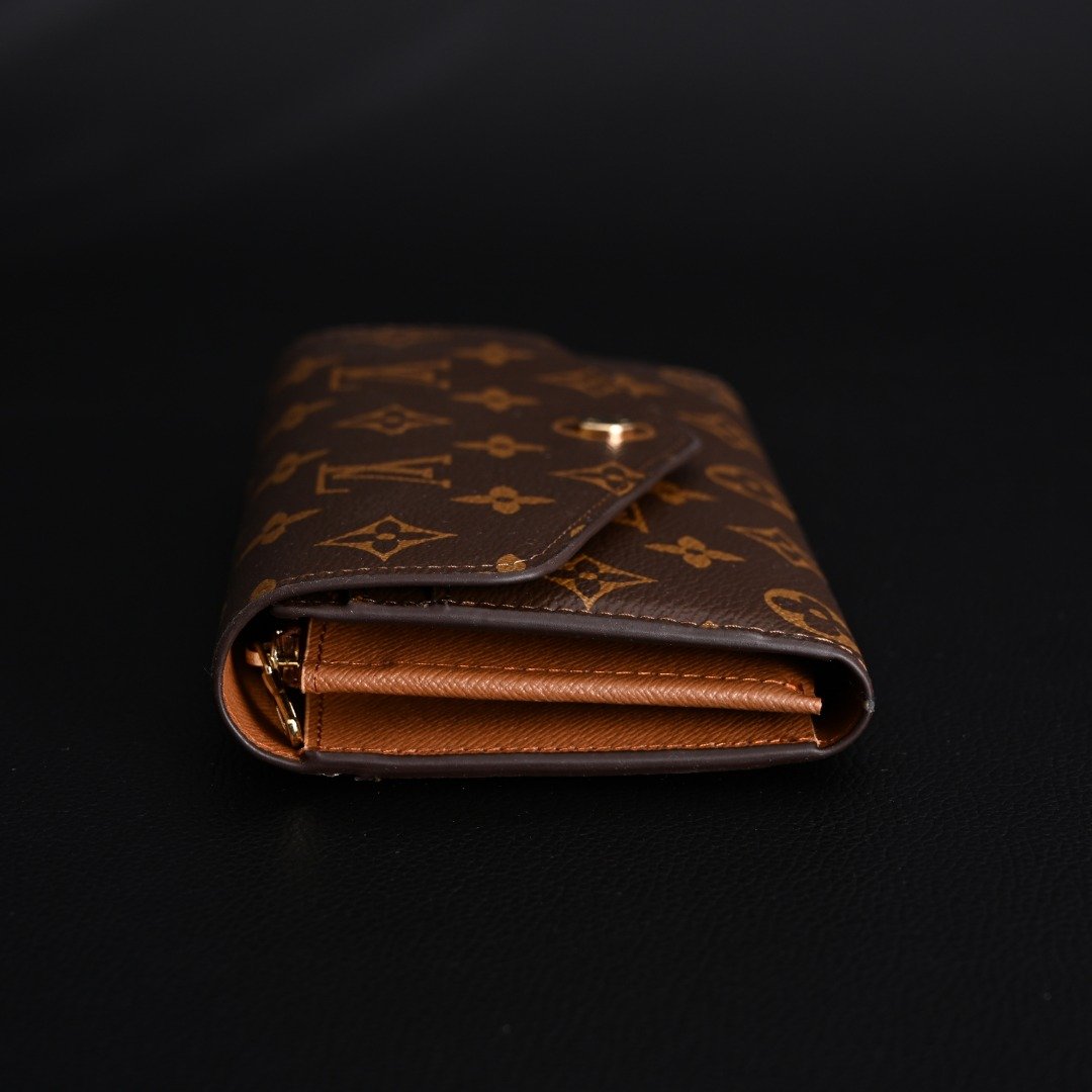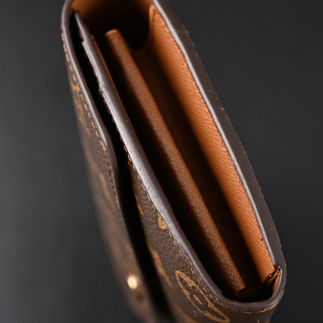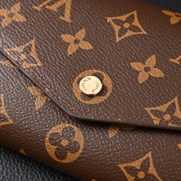 As one of Louis Vuitton’s iconic designs, the Sarah wallet combines Monogram canvas with a grained leather lining, recreating the elegant silhouette of an envelope-style design. Spacious interior features 2 large compartments, 1 central zippered coin pocket, and multiple card slots. Securely stores daily essentials. Monogram coated canvas – Grained calf leather lining – Metal hardware – Snap closure – 2 large accordion compartments – Zippered coin pocket – Interior slip pocket – Exterior slip pocket – 16 card slots!