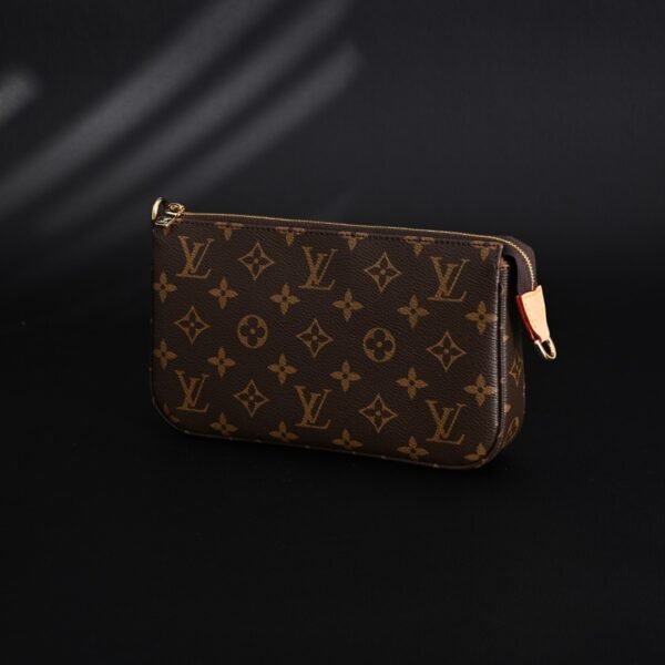 Official website price. This Pochette Accessoires clutch reinterprets the classic design in Monogram canvas, featuring a zipper closure for ample storage. Interior features a zippered pocket, slip pockets, and card compartments for organized daily essentials. Both the leather shoulder strap and dazzling chain are detachable, offering versatile carrying options. Monogram coated canvas – Calf leather trim – Fabric lining – Metal hardware – Zipper closure – Large main compartment – Zippered interior pocket – Interior patch pocket – Card slots – Holds 6.7-inch smartphone, Rosalie coin purse, earphones, sunglasses, keys, and lipstick – Shoulder strap: Detachable, non-adjustable – Strap length: 25.0 cm – Chain: Detachable – Chain length: 25.0 cm