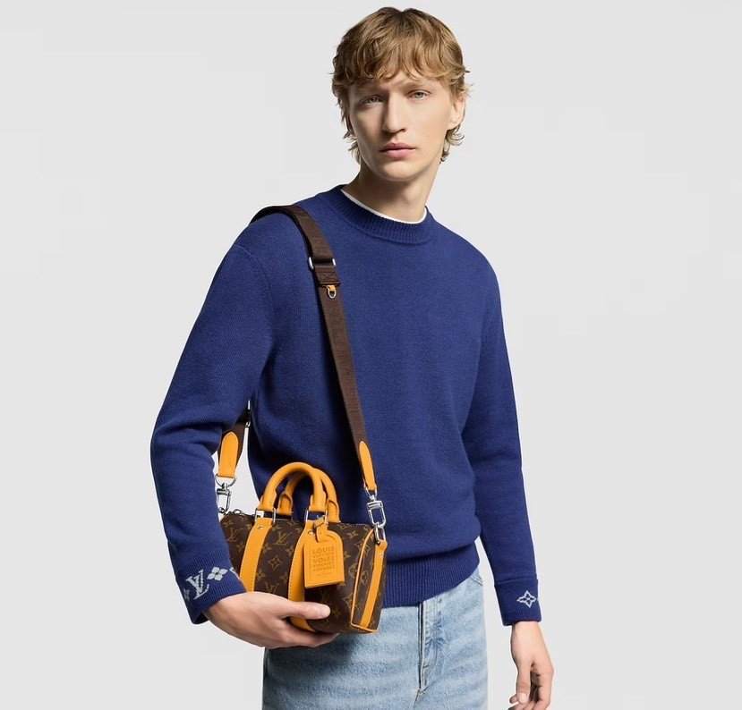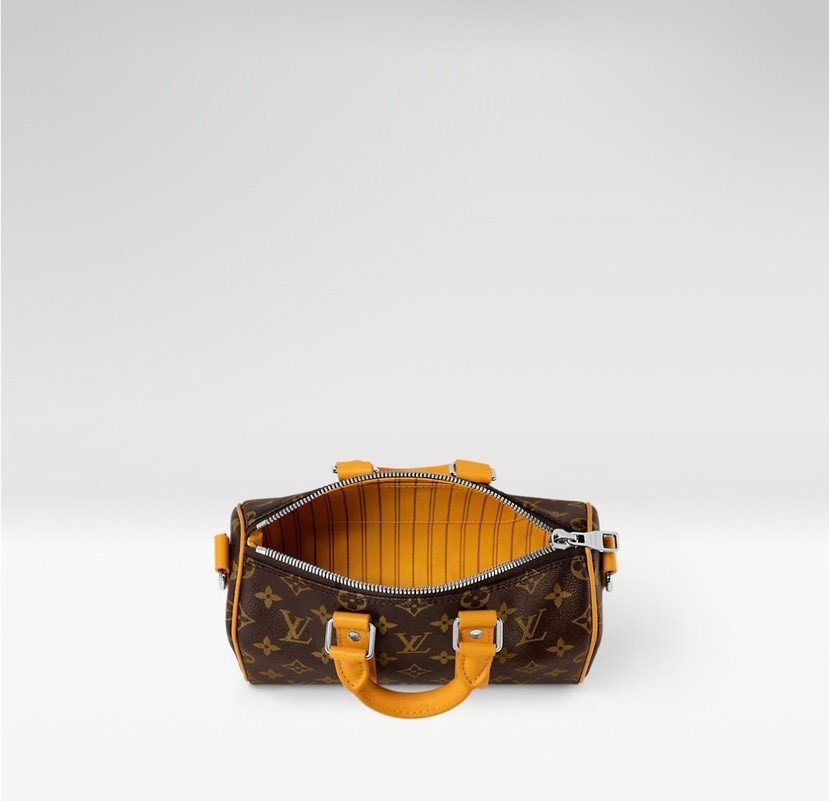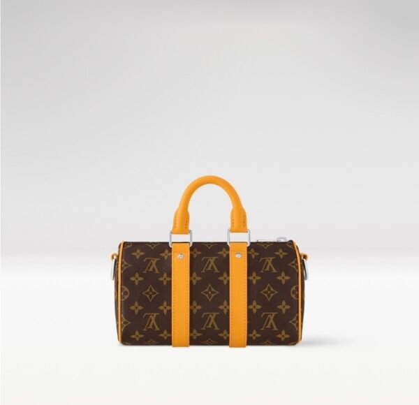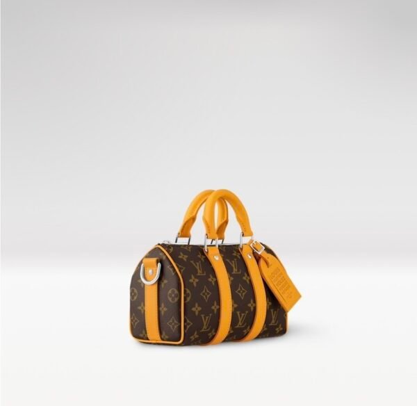 This LV Colormania Keepall Bandoulière 25 urban tote features Monogram Macassar canvas and colorful leather accents, with side straps and top handles echoing the hues of its textile lining. The traditional luggage tag is reimagined with the brand’s vintage “Volez, Voguez, Voyagez” emblem, adding a touch of sophistication. 25.0 x 15.0 x 11.0 cm (Length x Height x Width)